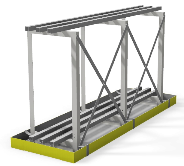| Light-Seismic | Steel members covered with ANSI 61 gray FR acid-resistant powder coating | ANSI gray acid-resistant Rail covers included for all battery rails. | Design stamped and certified by California Structural PE |
